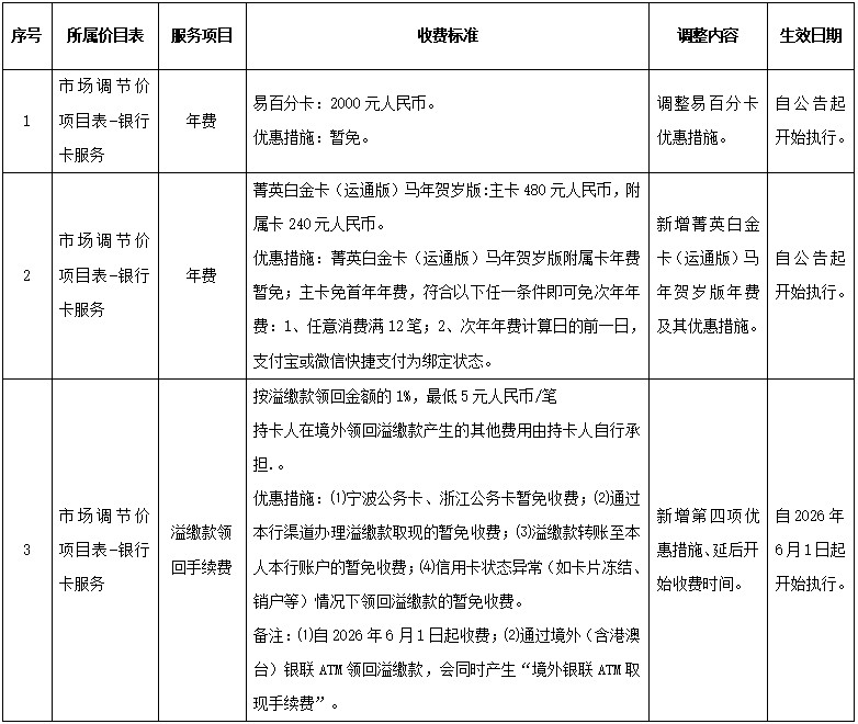 为了向您提供更加优质便捷的服务,根据国家有关规定,我行拟调整部分收费项目并进行规范公示。现将本次调整情况公告如下: