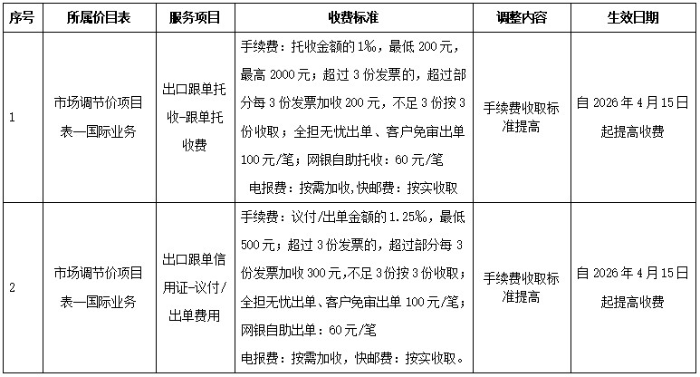为了向您提供更加优质便捷的服务,根据国家有关规定,我行拟调整部分收费项目并进行规范公示。现将本次调整情况公告如下: